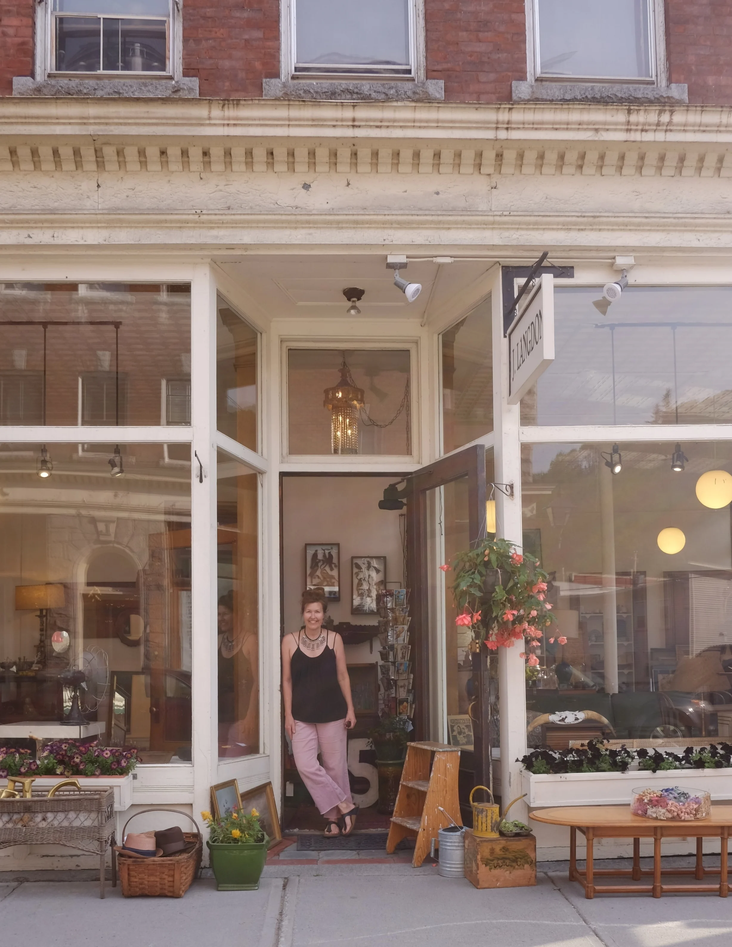 Located in an 1800's department store on historic Langdon Street in Montpelier, Vermont, J. Langdon is a dignified mix of antique and modern. Always fresh inventory, come browse home furnishings from primitive to mid century modern. Find industrial and architectural pieces, art, pottery and other curious goods. Vintage jewelry, textiles, rugs, and quilts come in daily.